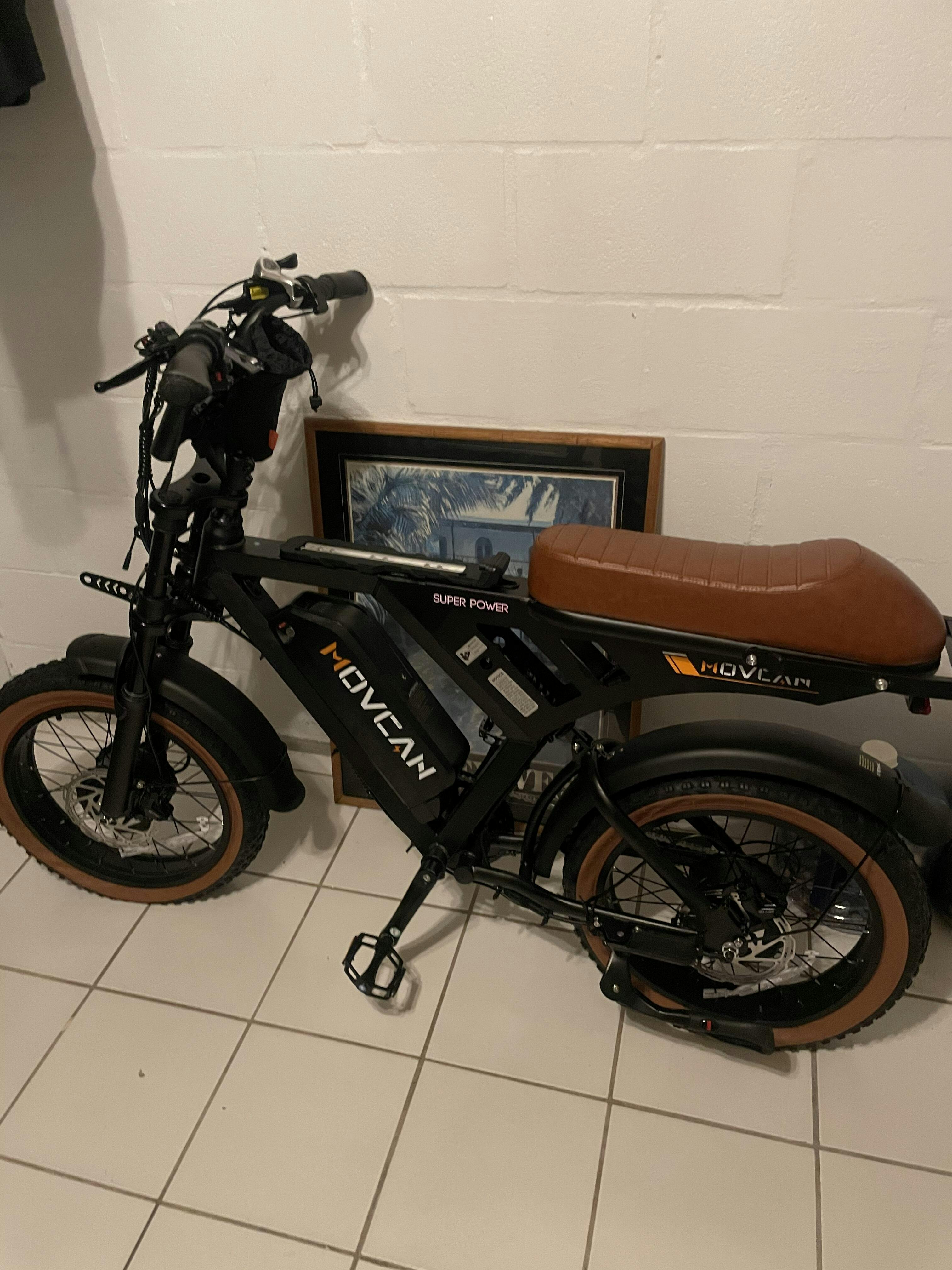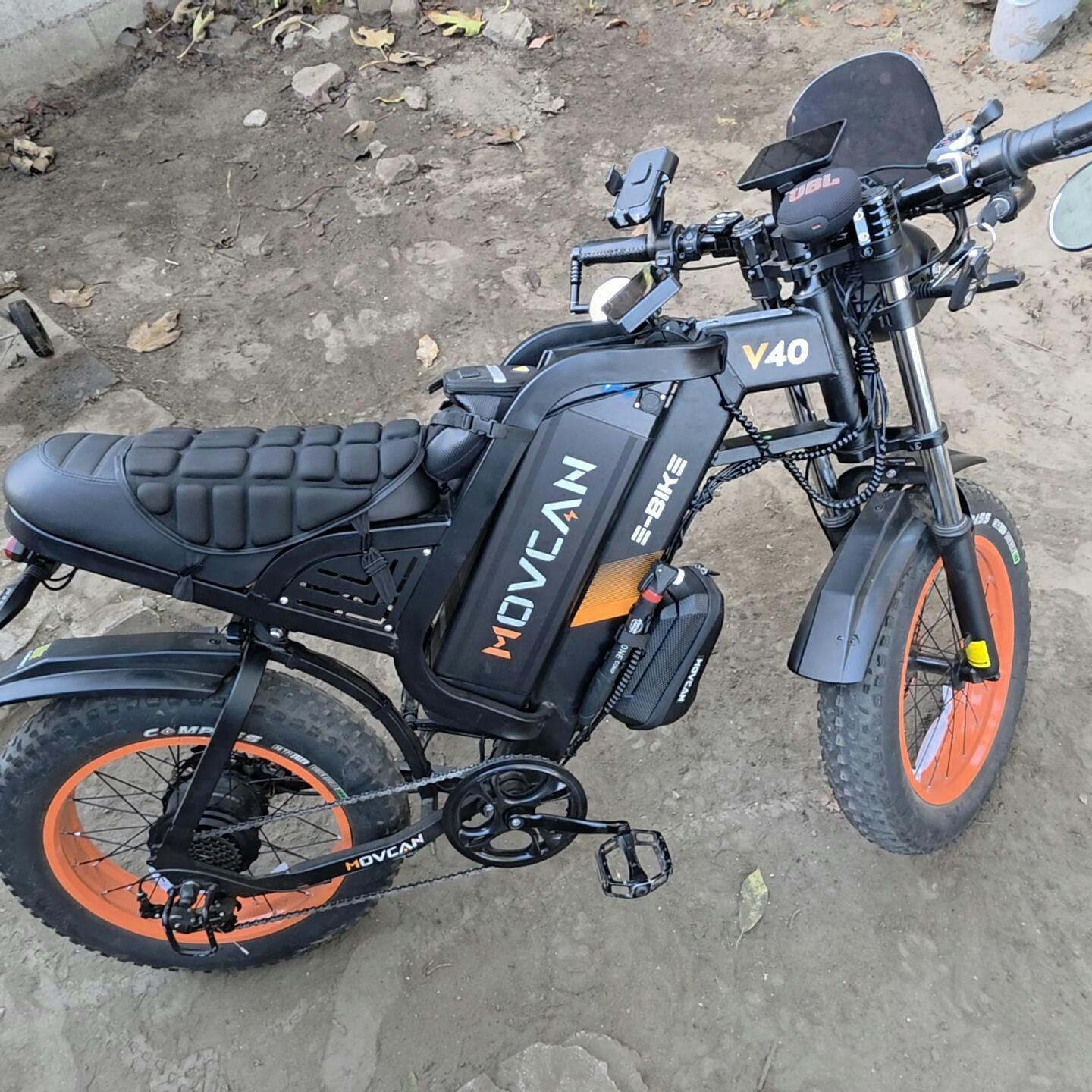 Very nice looking E-Bike. Instruction book was a bit vague on certain sections. Assembly was fairly easy with a good portion preassembled. Front tire was a little tricky to install, there was a yellow spacer blocking the brakes from closing. I didn't realize it was to be removed before installation and the Instruction book had no mention of removal before Front tire installation. Both tires came delivered flat with no air and both tires kept separating from the bead because the tires were pressed down, but after partial inflation they seem to have settled in now. Also the onboard power level indicator lights doesn't function when the power button is pressed, so I just use the bike information display to monitor the battery power level. Overall with just 10 miles currently on the odometer, I am enjoying the MOVCAN V60