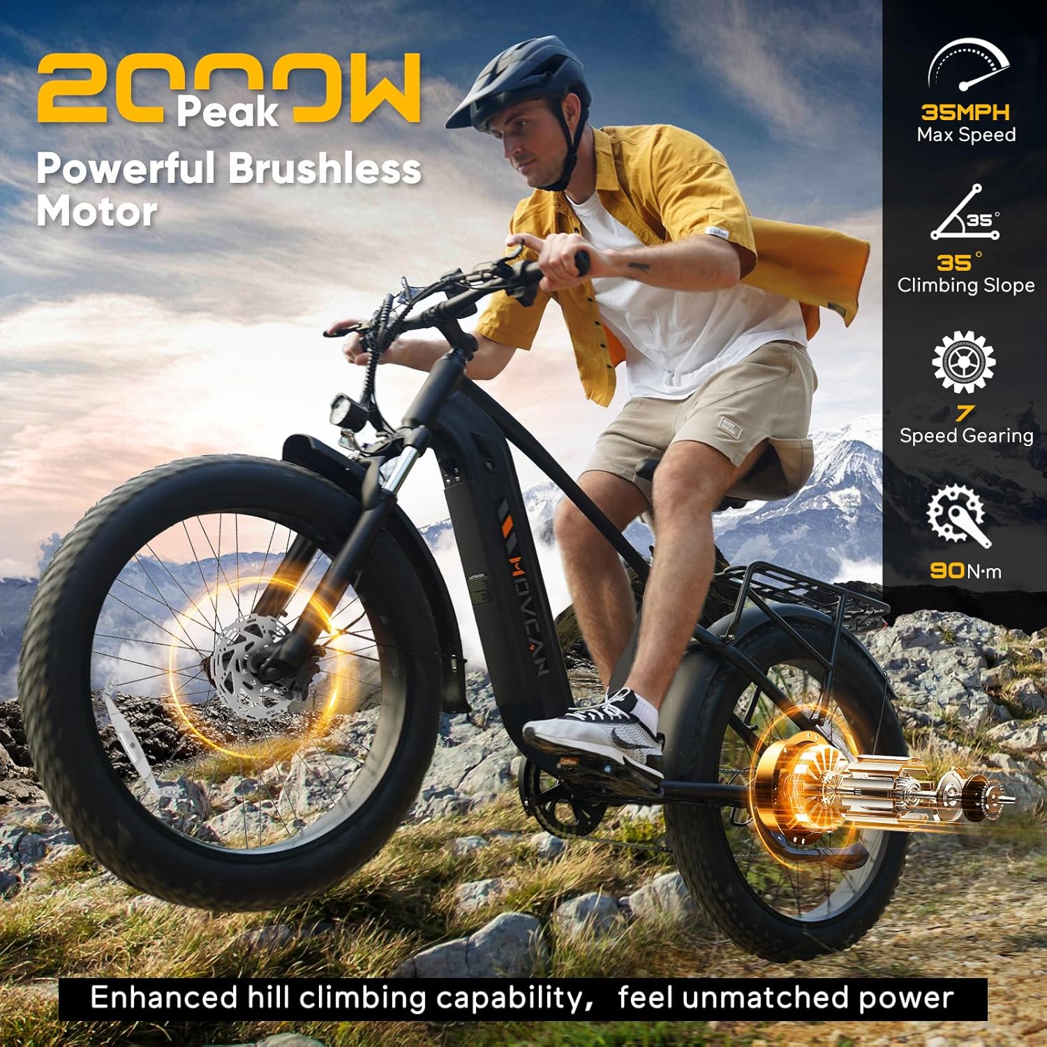 EB60 Electric Bike for Adults,Peak 2000W Motor Up to 35MPH,26" Fat Tire Ebike with NFC,48V 20.8AH Hidden Removable Battery,70Miles,7 Speed Gear Hydraulic Brake Mountain Off-Road Ebike