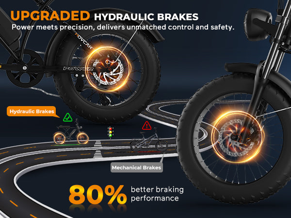 MOVCAN V60 Pro's hydraulic brakes deliver 80% stronger stops with fade-resistant, one-finger control. Perfect for city or trails, they offer all-weather reliability and maintenance-free durability for confident riding.