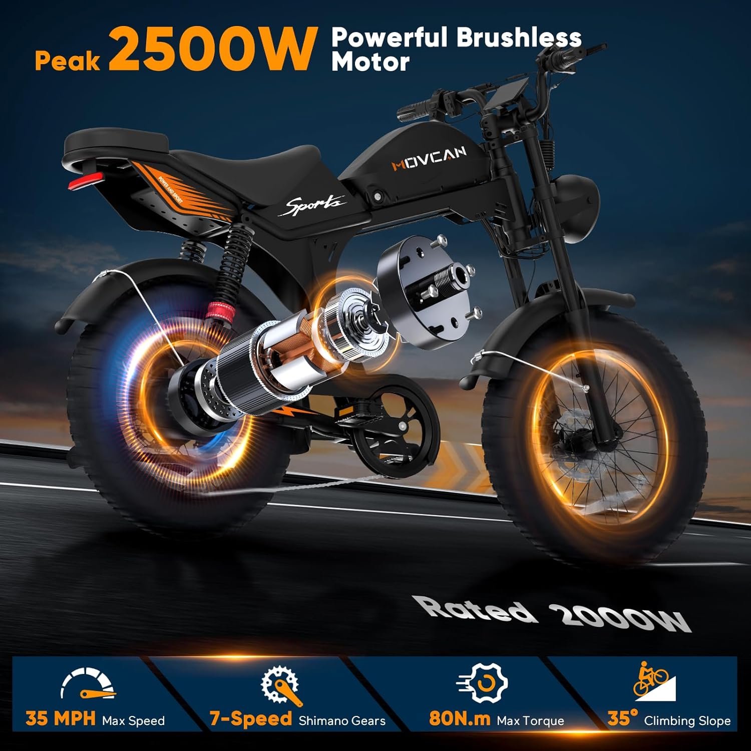 Safety is a priority with the MOVCAN V70. It comes equipped with dual hydraulic brakes for reliable stopping power, ensuring safe rides even at high speeds. The bike also features a robust frame and high-quality components, making it a dependable choice for riders.